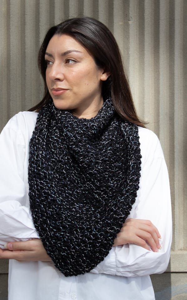 A truly unique yarn! We start with a bulky thick-and-thin single made of our delightfully soft superwash merino wool, and then we criss-cross it with a binder thread (either black or white.) Then the yarn is dyed one of our signature kettle-dyed colorways, and: poof! Something unlike any yarn we've made before, inspired by a particular style of hand-spun yarn. Caracol knits up into a cozy, fluffy fabric with a ton of texture and visual interest. Simple stitch patterns really let it sing!